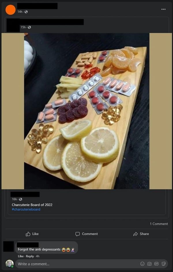 Look at the books on each side... Seem to me it's not a funny thing at all... DRUGS...